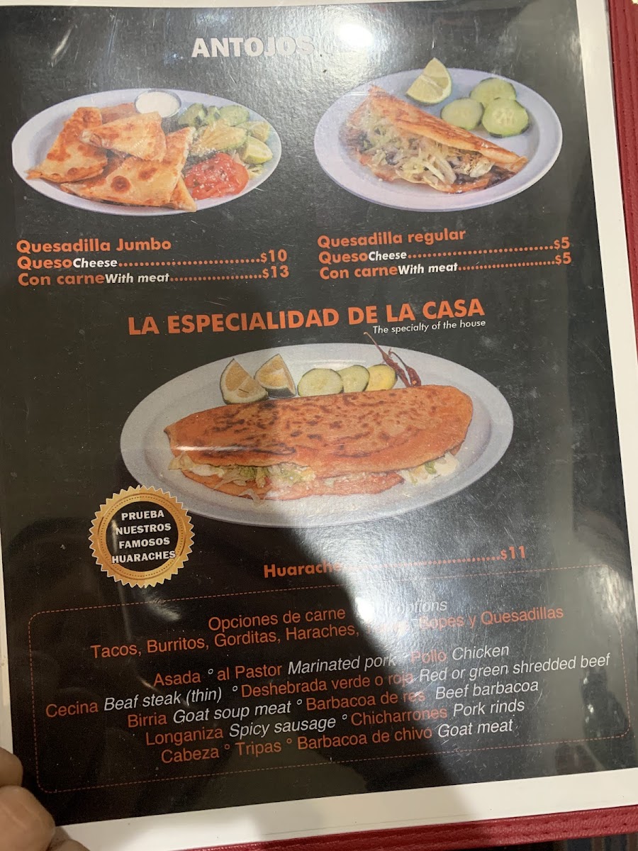 Loritos Real Mexican Food Menu